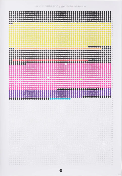 Du bekommst den Kalender mit schwarzer und weißer Seite sowie genug Punkte für ein ganzes Leben in der von Dir gewählten Lebensfarbe.